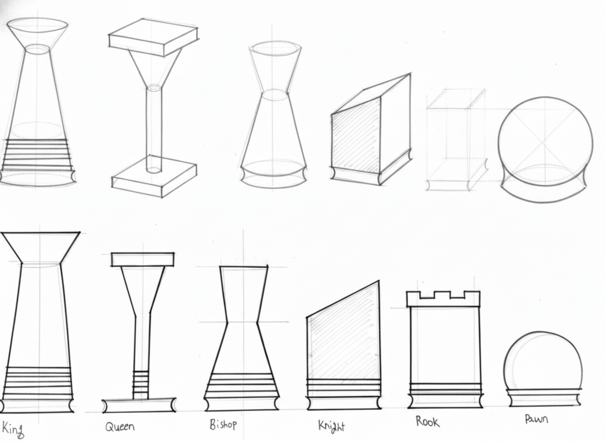 A chess set must function as a clear game system during play and as a sculptural interior object at rest.