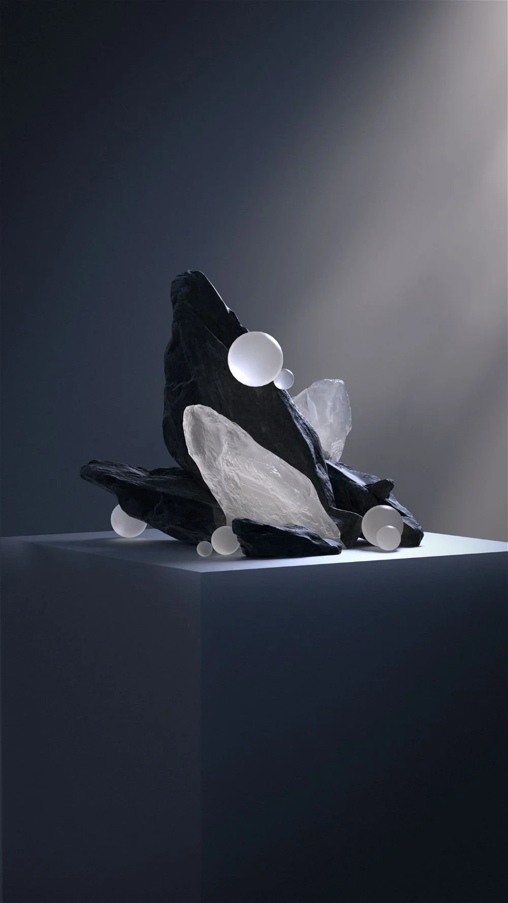 The design direction emphasizes material contrast and geometric clarity over symbolic or decorative elements.