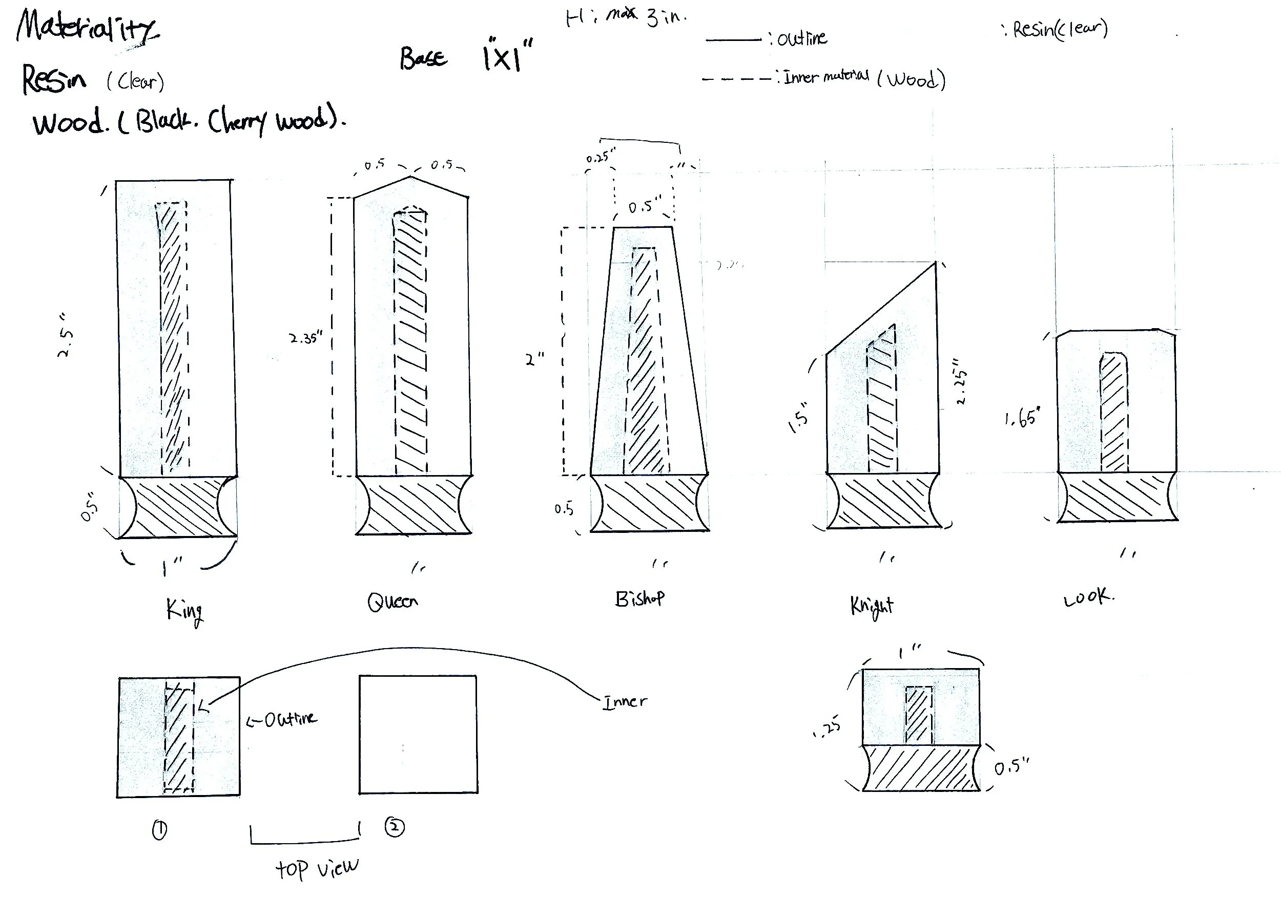This project reinterprets traditional chess piece forms through material contrast and simplified geometry.